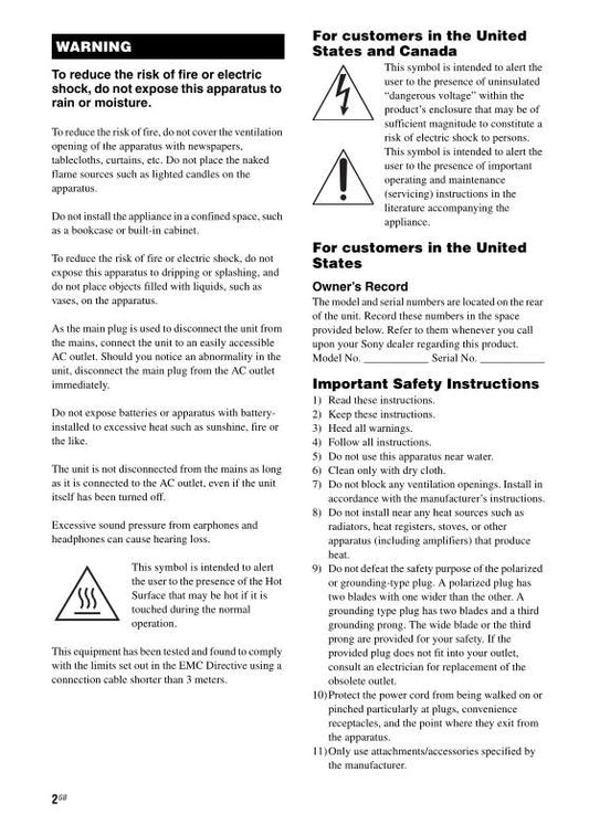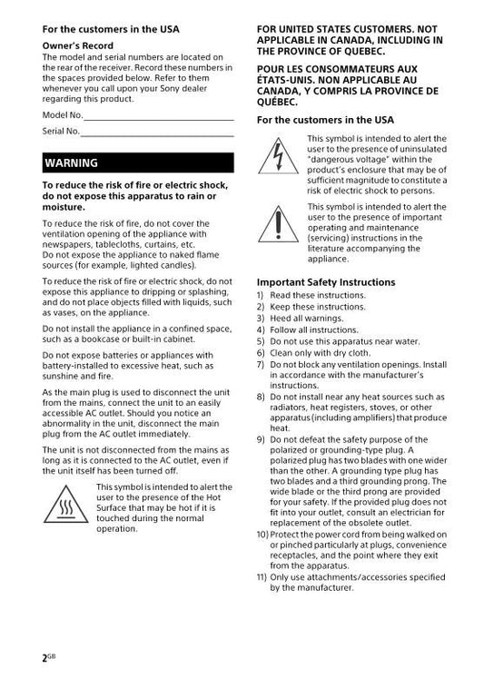 Sony RDRVX530 Audio/Video Receiver Operating Manual