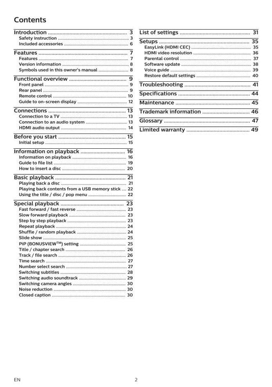 Philips BDP1502/F7 Blu-Ray DVD Player Operating Manual
