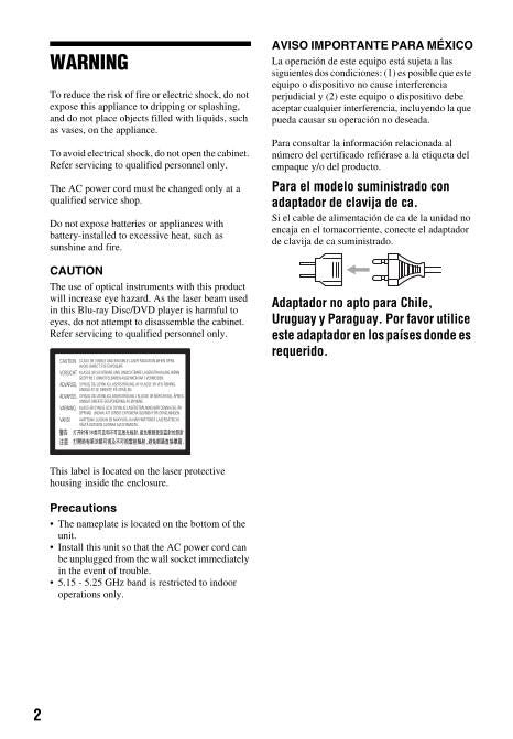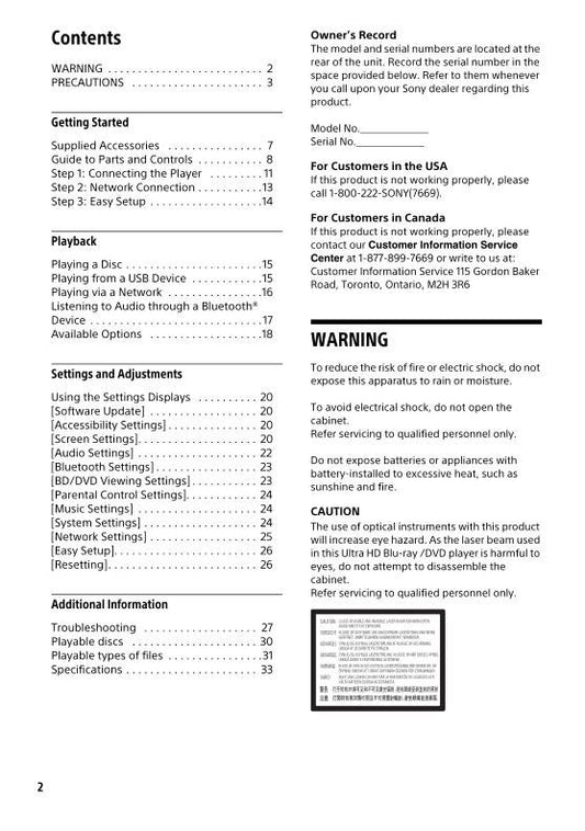 Sony UBP-UX80 Blu-Ray DVD Player Operating Manual