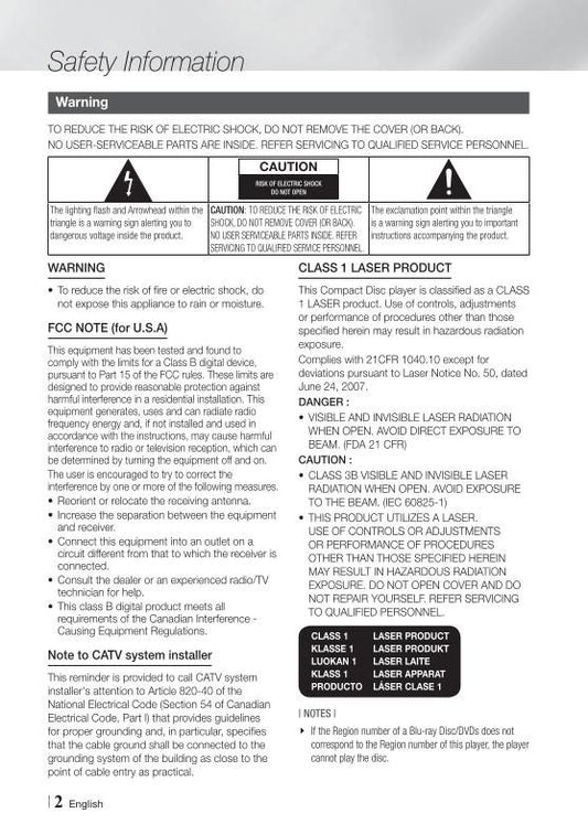 Samsung BDH5900/ZA Blu-Ray DVD Player Operating Manual