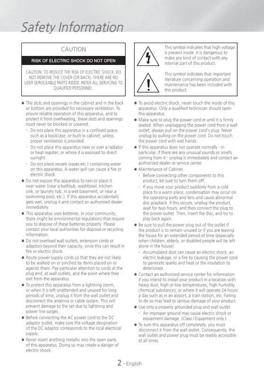 Samsung HTJ5500W Blu-Ray & Home Theater System Operating Manual