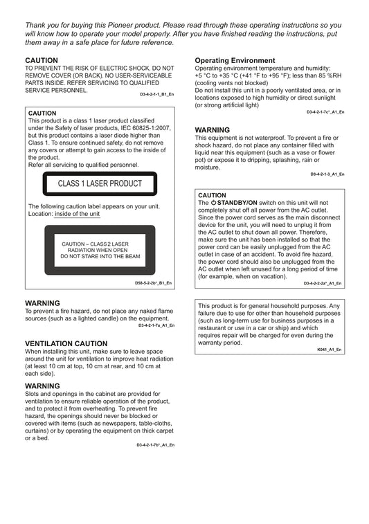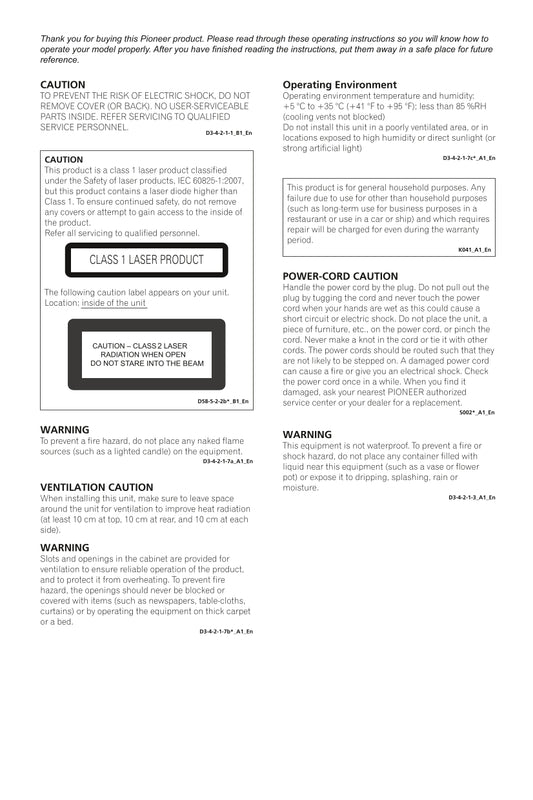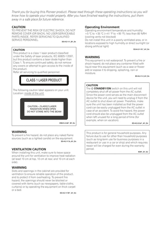 Pioneer BDP-100-K Blu-Ray Player Owner/ User Manual (Pages: 46)