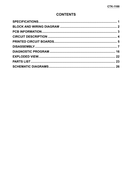Casio CTK-100 Keyboard Piano Service Manual (Pages: 19)