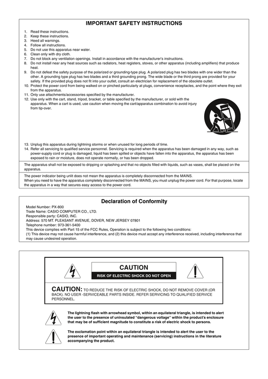 Casio PX-800 Keyboard Piano Owner's/ User Manual (Pages: 53)