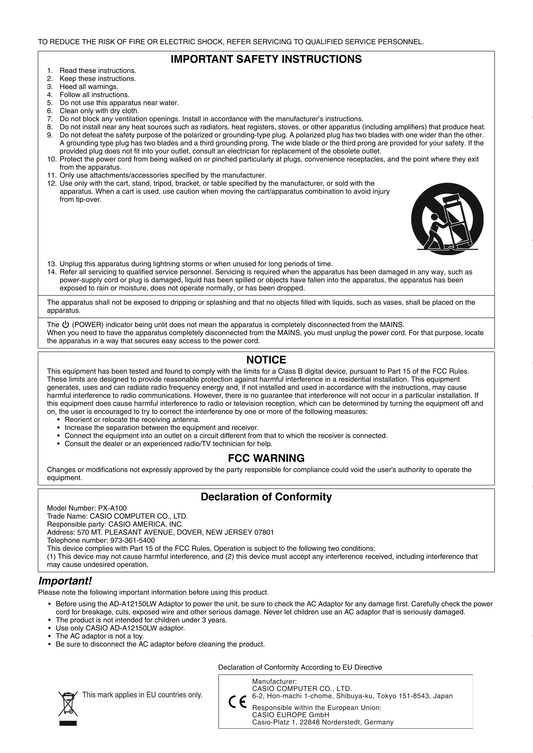 Casio PX-A100 Keyboard Piano Owner's/ User Manual (Pages: 38)