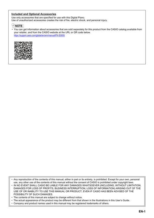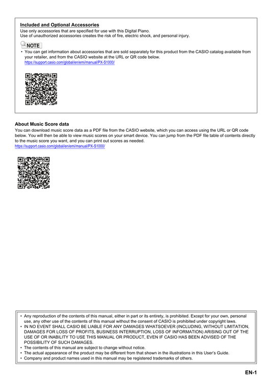Casio PX-S1000 Keyboard Piano Owner's/ User Manual (Pages: 47)
