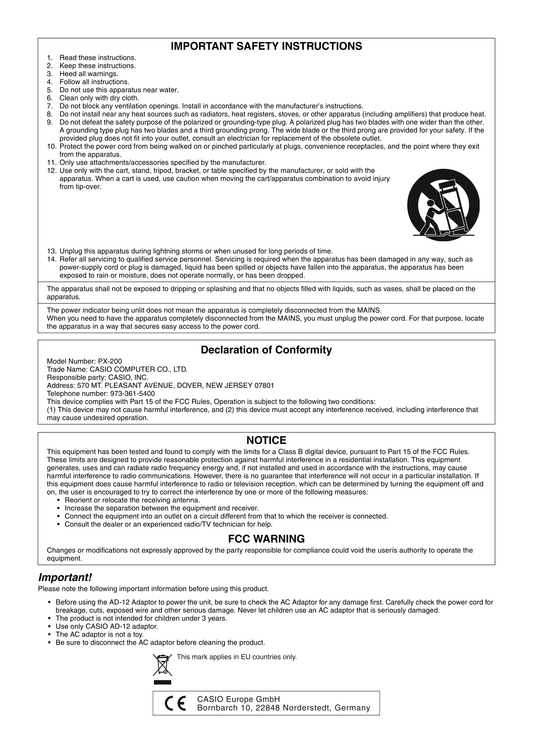 Casio PX-200 Keyboard Piano Owner's/ User Manual (Pages: 50)
