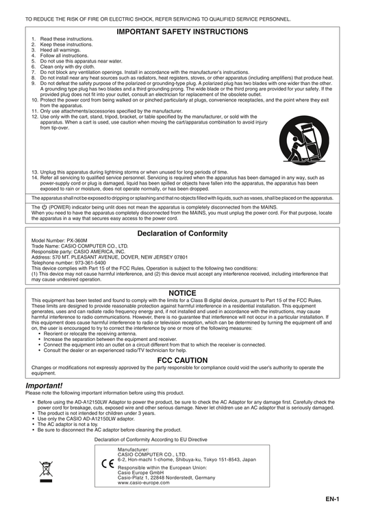 Casio PX-360 Keyboard Piano Owner's/ User Manual (Pages: 91)