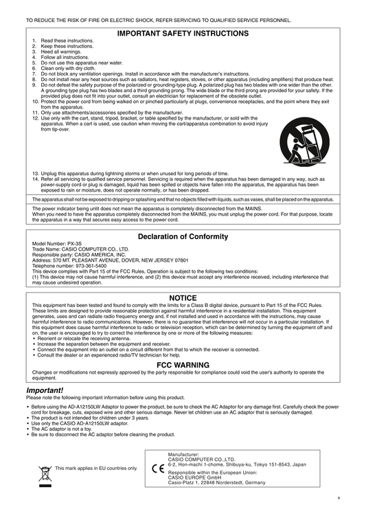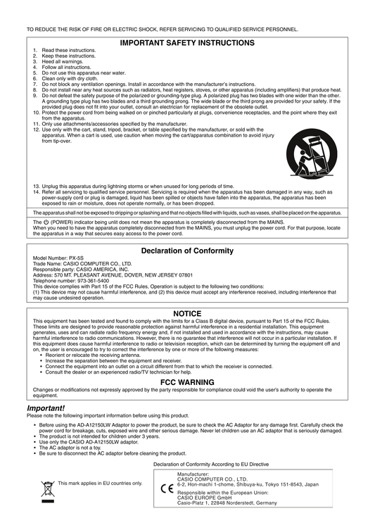Casio PX-3 Keyboard Piano Owner's/ User Manual (Pages: 70)