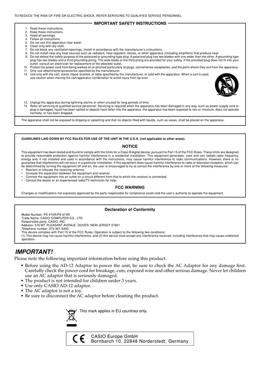 Casio PX-410R & PX-575R Keyboard Piano Owner's/ User Manual (Pages: 100)