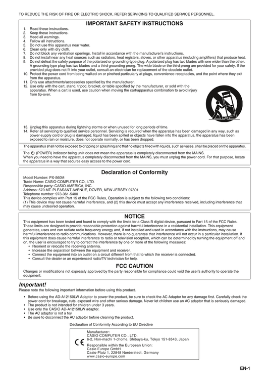 Casio PX-500L Keyboard Piano Owner's/ User Manual (Pages: 36)