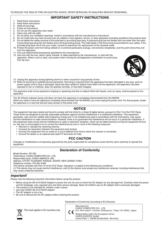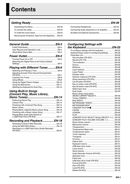 Casio PX-770 & PX-870 Keyboard Piano Owner's/ User Manual (Pages: 63)