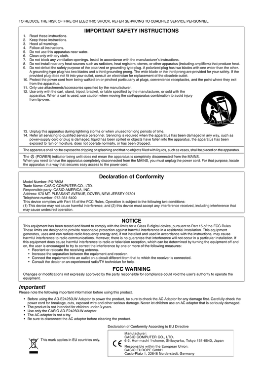 Casio PX-780M Keyboard Piano Owner's/ User Manual (Pages: 84)