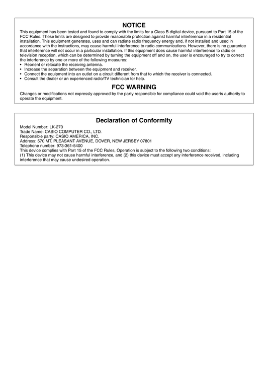 Casio LK-270 Keyboard Piano Owner's/ User Manual (Pages: 75)