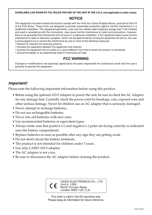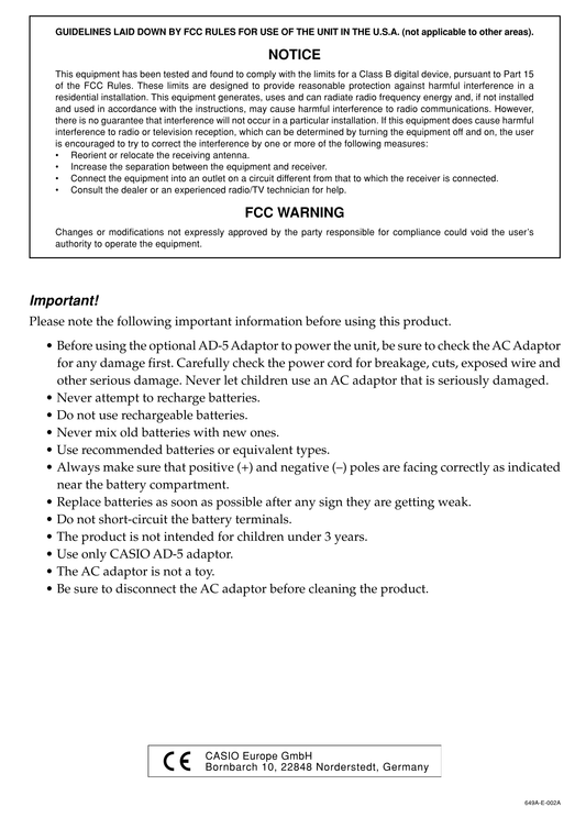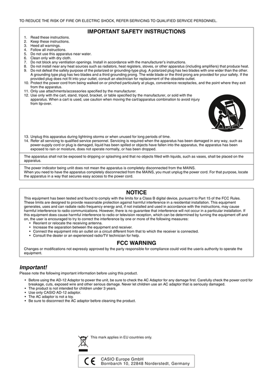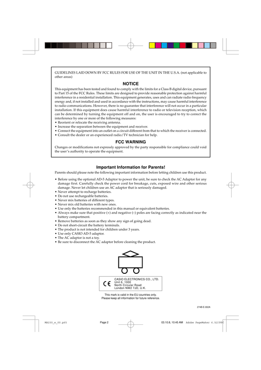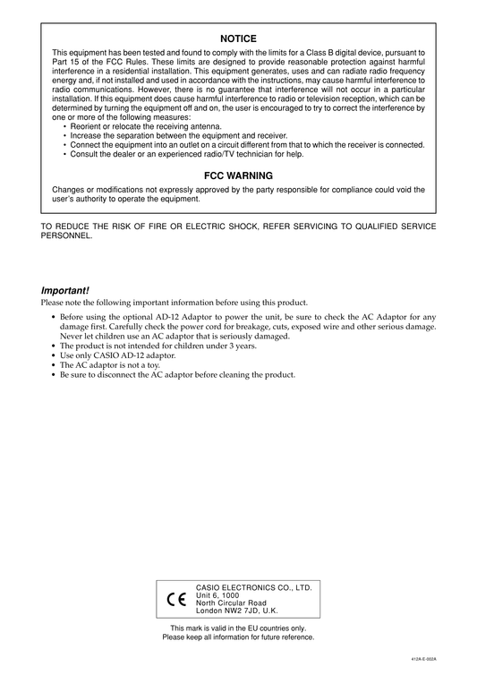 Casio MA-150 Keyboard Piano Owner's/ User Manual (Pages: 43)