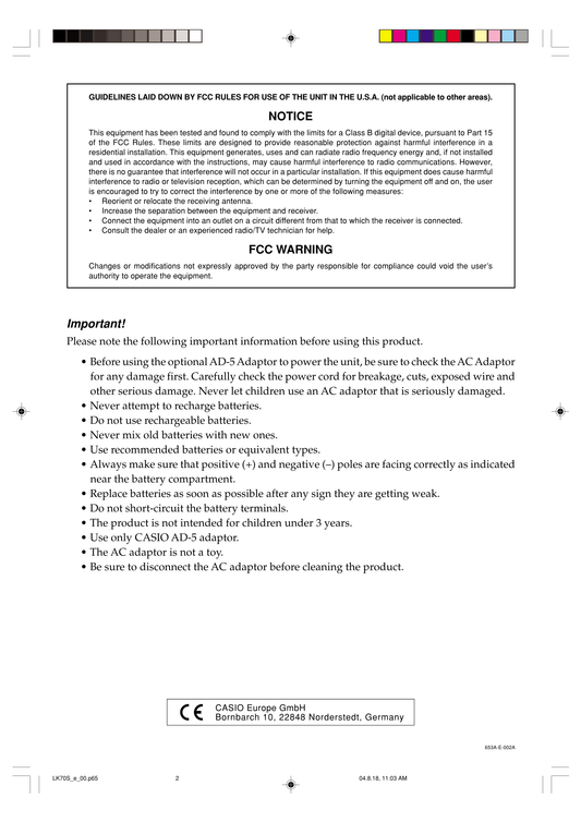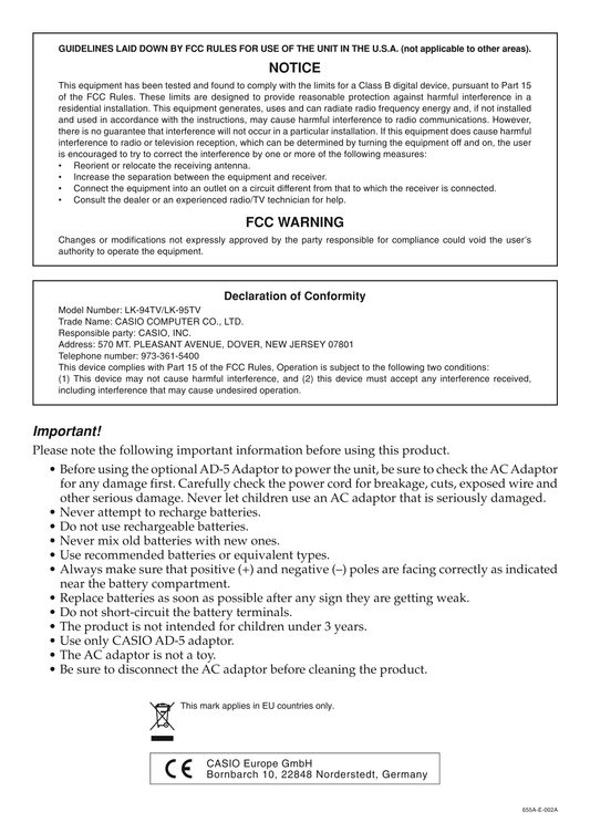 Casio LK-55 & LK-56 Keyboard Piano Owner's/ User Manual (Pages: 83)