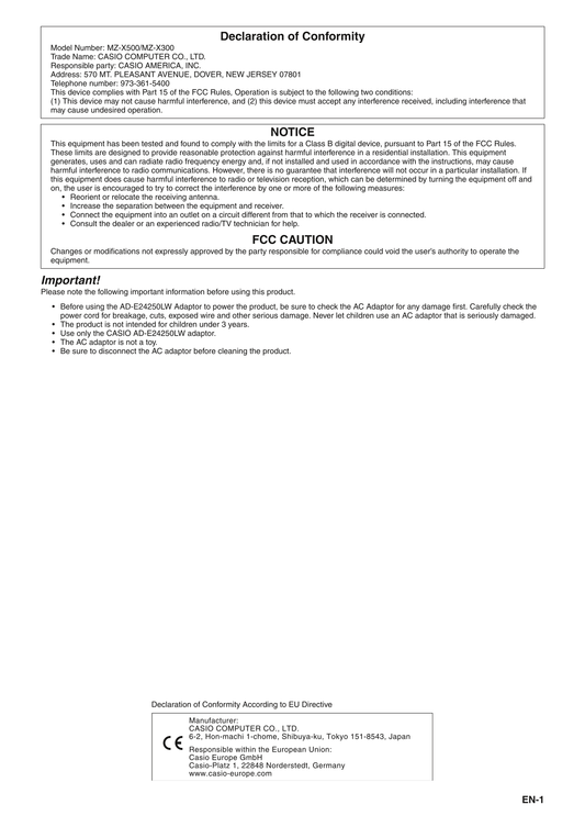 Casio MZ-X300 & MZ-X500 Keyboard Piano Owner's/ User Manual (Pages: 82)
