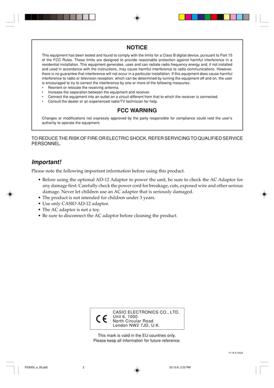 Casio PS-3000 Keyboard Piano Owner's/ User Manual (Pages: 55)