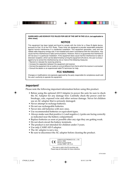 Casio CTK-230 Keyboard Piano Owner's/ User Manual (Pages: 51)