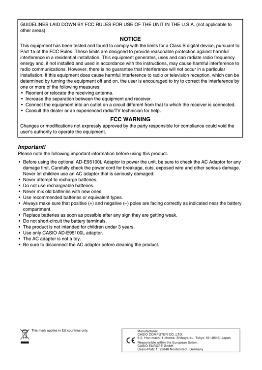 Casio CTK-451 & CTK-471 Keyboard Piano Owner's/ User Manual (Pages: 46)