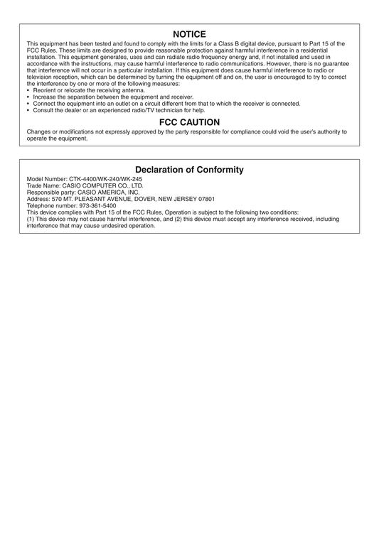 Casio CTK-4400, WK-240 & WK-245 Keyboard Piano Owner's/ User Manual (Pages: 76)