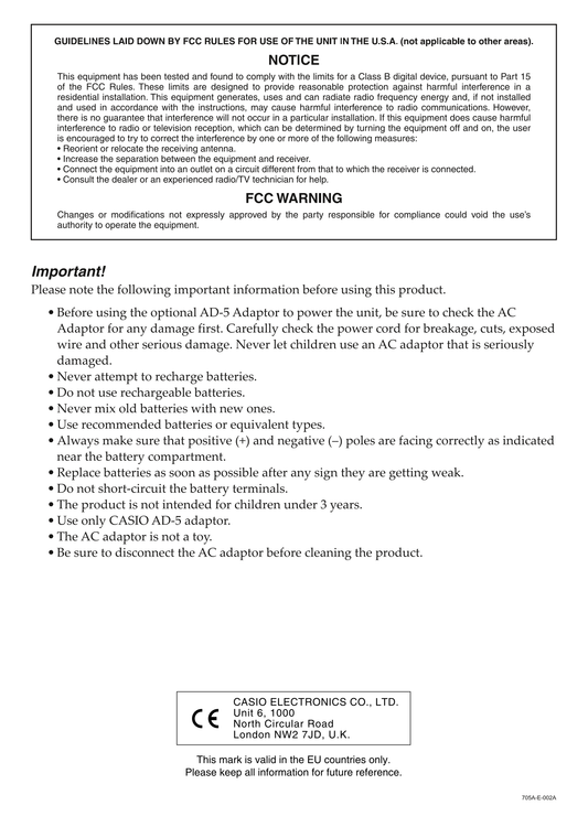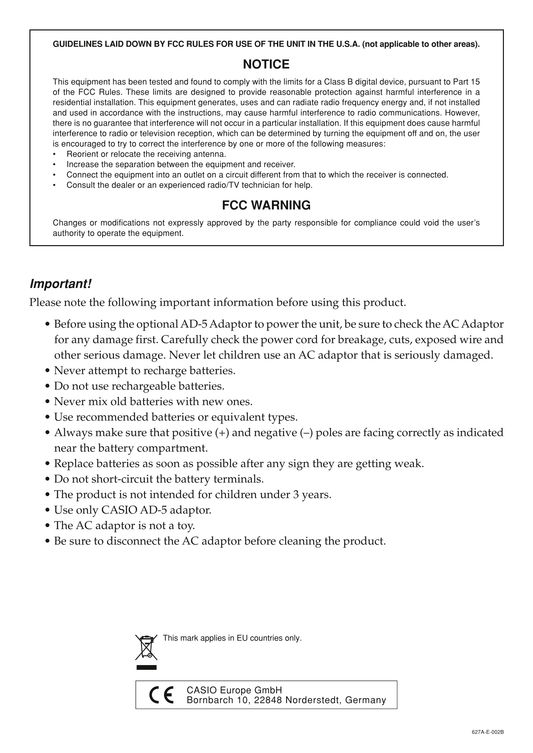 Casio CTK-2090 & CTK-2400 Keyboard Piano Owner's/ User Manual (Pages: 47)