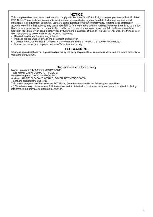 Casio CTK-6200, CTK-6250 & WK-6600 Keyboard Piano Owner's/ User Manual (Pages: 132)