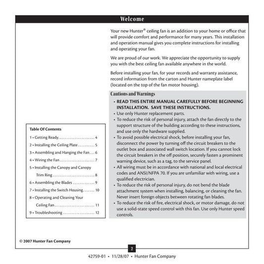 Hunter 22431 De Instalaci 28 pages Ceiling Fan Operating Manual