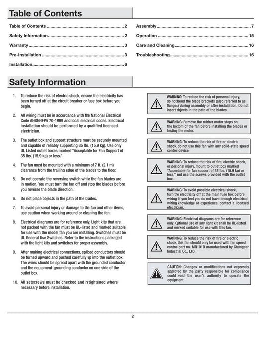 Hampton Bay 52-MNL (24 pages) Ceiling Fan Operating Manual