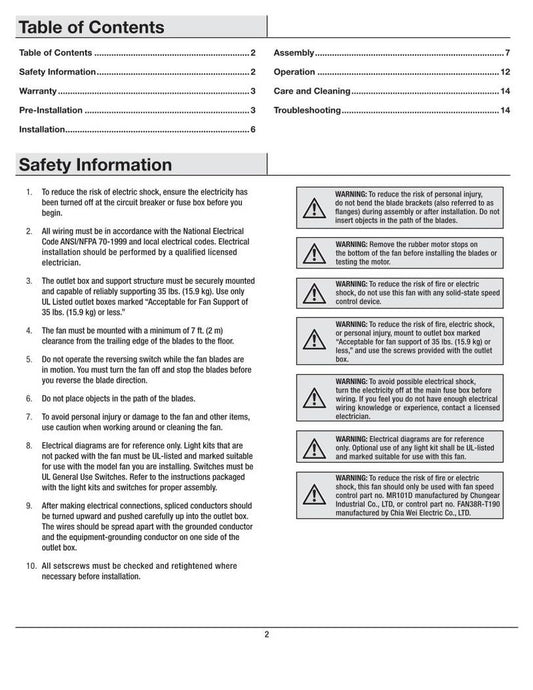 Hampton Bay 51015 (28 pages) Ceiling Fan Operating Manual