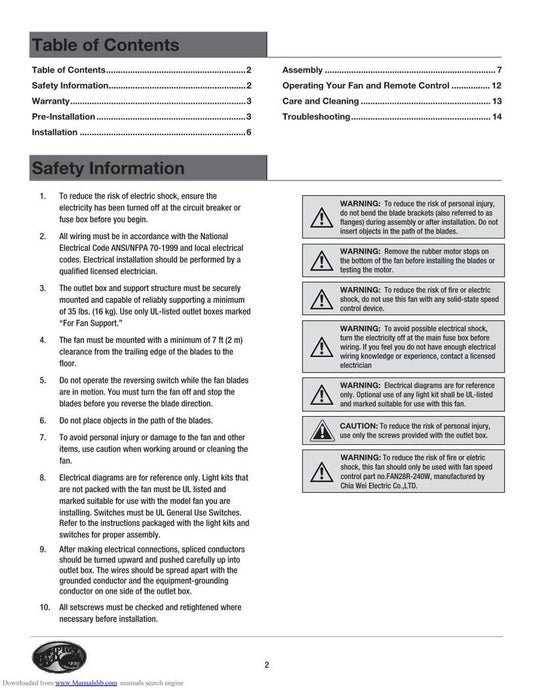 Find and download or order hard copy manuals for ceiling fans at Manuali. Choose from detailed PDF guides or binded copies for installation, troubleshooting, and maintenance to keep your ceiling fans running smoothly. Enjoy instant access to essential information for optimal performance. Browse our collection now!