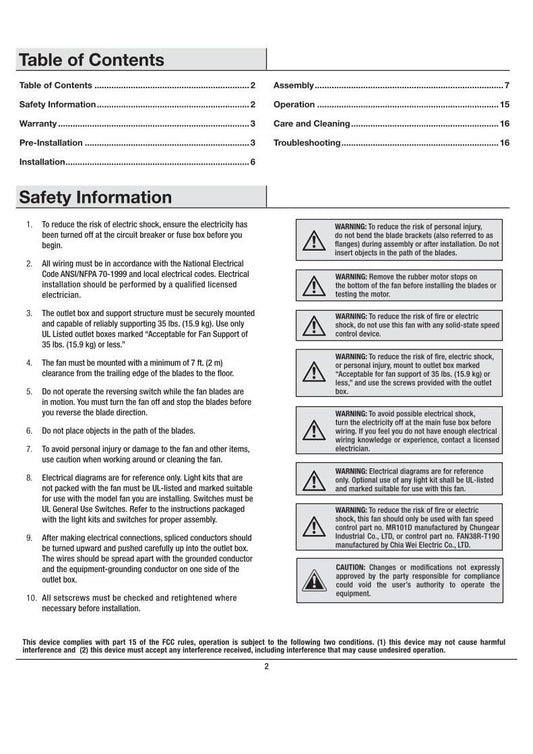 Hampton Bay 54 Covington Ceiling Fan Operating Manual