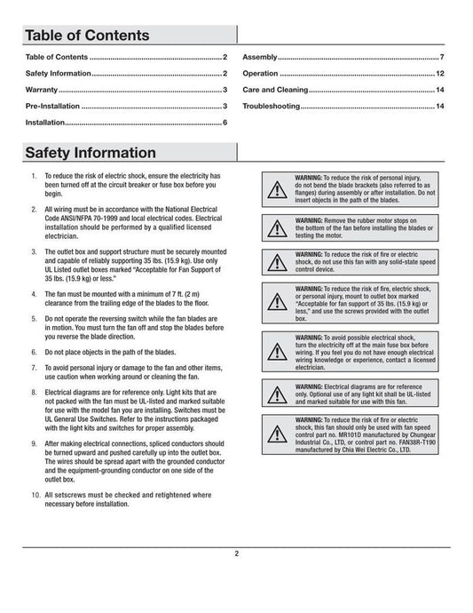 Hampton Bay 99434 (17 pages) Ceiling Fan Operating Manual