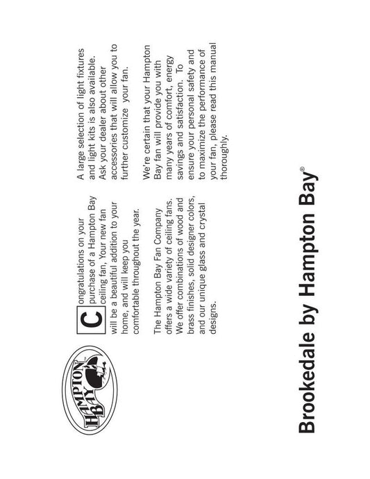 Hampton Bay AC 418 BNBrookedale 60 in Brushed Nickel Ceiling Fan Operating Manual