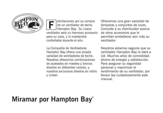 Hampton Bay AC374 Miramar 60 Inch Ceiling Fan Operating Manual