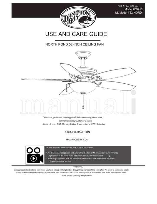 Hampton Bay 993-855 Campbell 52 in Brushed Nickel om Ceiling Fan Operating Manual