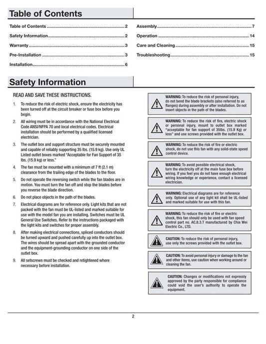 Hampton Bay 92408 EF200S(X)-52 (34 pages) Ceiling Fan Operating Manual