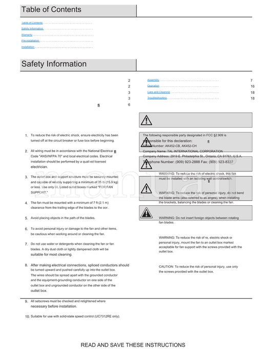 Hampton Bay AK330-BN AK330-EB AK330-MBK AK330-MWH (19 pages) Ceiling Fan Operating Manual