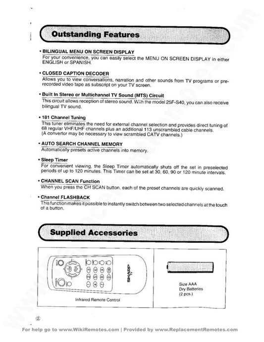 Sharp 20FS40 25FS40 Consumer Electronics Operating Manual