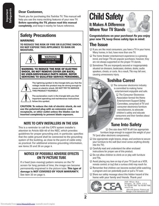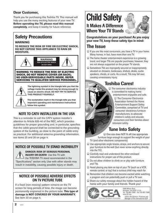 Toshiba 32AF45 Consumer Electronics Operating Manual