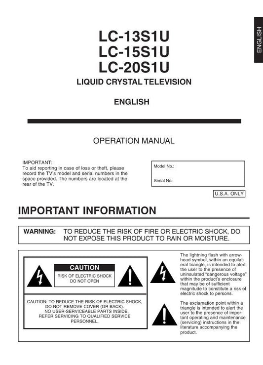 Sharp LC13S1U LC13S1UB LC15S1U Consumer Electronics Operating Manual