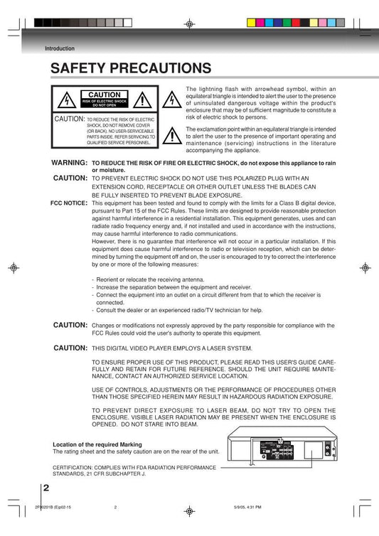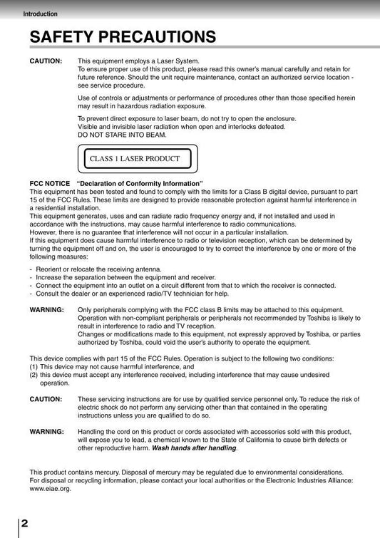 Toshiba SDP2700 Consumer Electronics Operating Manual
