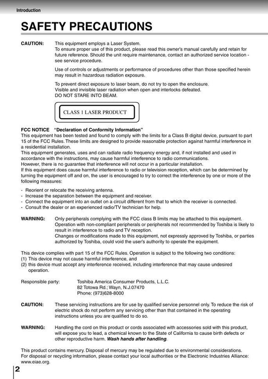 Toshiba XB2000 Consumer Electronics Operating Manual