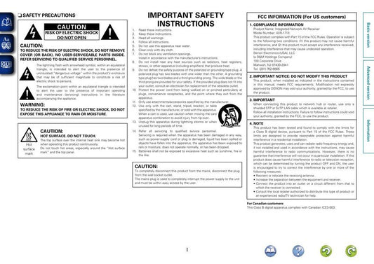 Denon AVR1713 Audio/Video Receiver Operating Manual