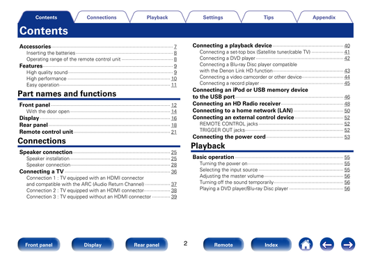 Explore the world of Denon with Manuali, your ultimate destination for comprehensive manuals tailored to Denon products. Whether you're a music enthusiast, home theater aficionado, or an audiophile seeking precision, Manuali offers a diverse array of manuals covering Denon's range of audio and visual equipment. From high-fidelity receivers to immersive sound systems and cutting-edge headphones, our collection ensures you have the essential guidance for setup, operation, and maintenance of your Denon devices. Dive into our meticulously curated library and discover the expertise that defines Denon's commitment to premium audio-visual experiences.