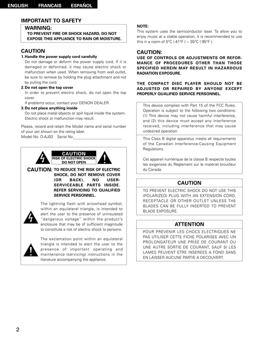 Denon D-AJ03 Audio System Owner/ User Manual (Pages: 73)