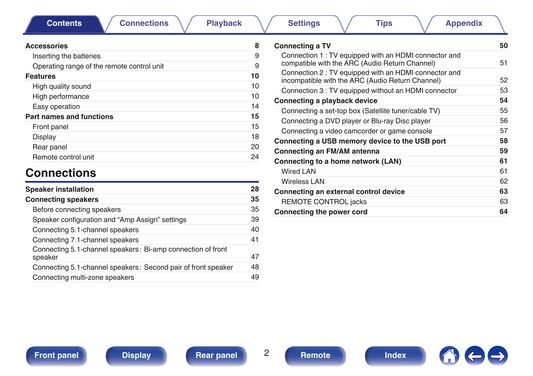 Denon AVR-X2000 AV Receiver Owner/ User Manual (Pages: 225)