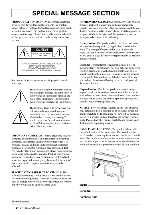 Yamaha AvantGrand N1 Digital Piano Owner's/ User Manual (Pages: 47)