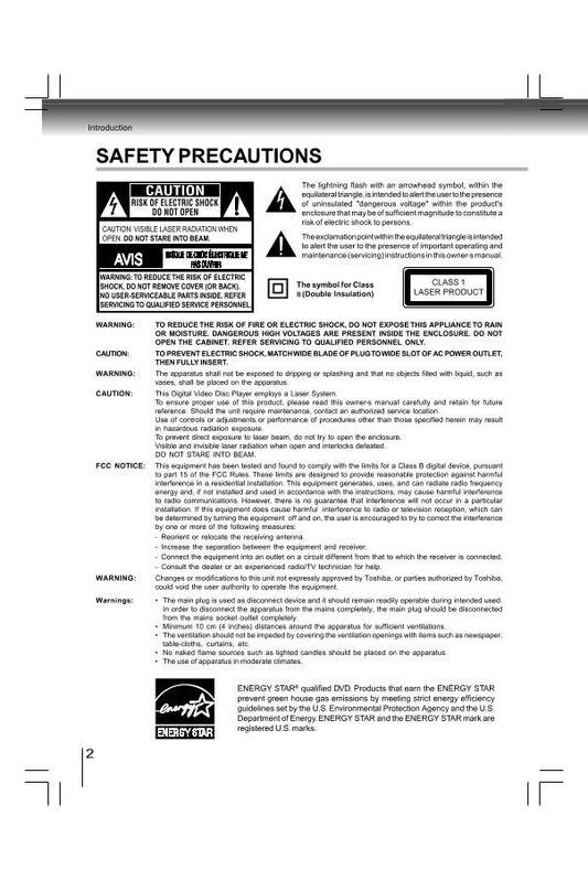 Toshiba BDX2250KU Blu-Ray DVD Player Operating Manual