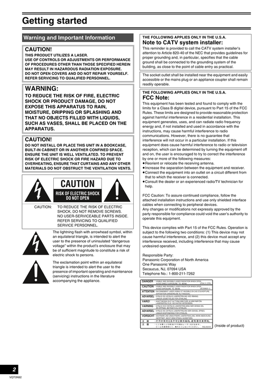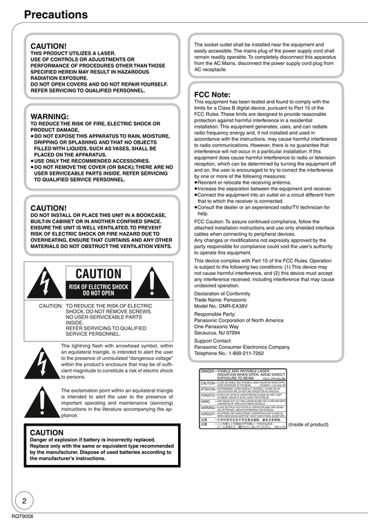 Panasonic DMR-EA38V DVD/VCR Combo Owner's/ User Manual (Pages: 92)